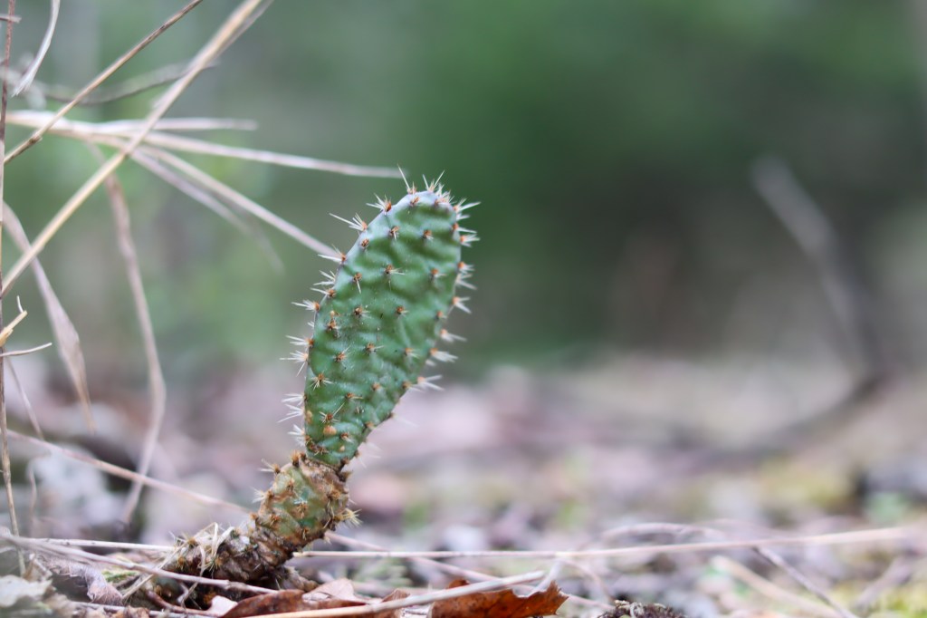 A small cacti pokes up from the forest floor on a sandy hillltop near Lake Jacomo early April 2025. Canon RF50mm f1.8 lens