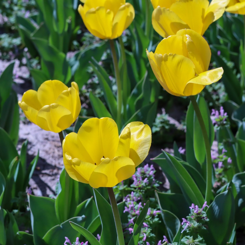 Some beautiful Tulips poking up through some Purple (Henbit) dead Nettle in Grain Valley, MO. early April 2025 Canon RF 50mm f1.8
